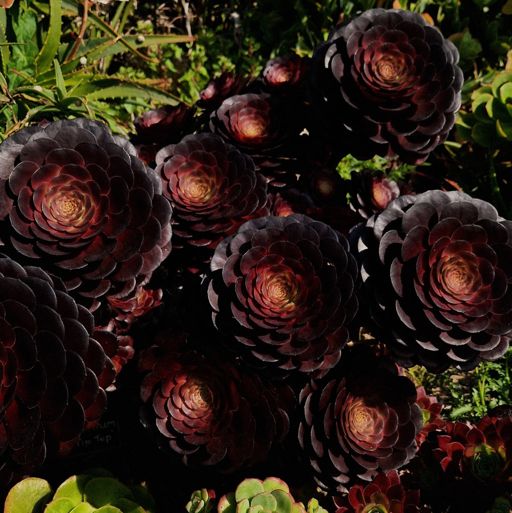 This is a small form of Aeonium arboretum. It has dark purple leaves and the centre of each rosette stays green. With an overall height of 45cm and spread of 30cm this is one of the mid size Aeoniums. It is multi branching and will have many rosettes that stay small and compact keeping very neat. Like other Aeoniums they are best kept frost free and grown in a sunny position and make an excellent pot plant and works well as a specimen plant or mixed with other succulents in a larger container. Use a free draining multipurpose compost with at least 10% grit/perlite for drainage.